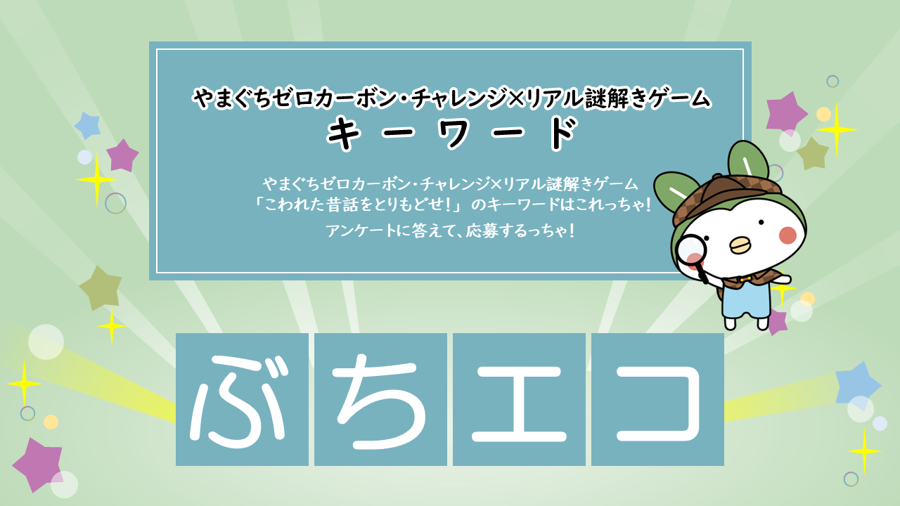 やまぐちゼロカーボン・チャレンジ×リアル謎解きゲーム 「こわれた昔話をとりもどせ!」 キーワードは!?